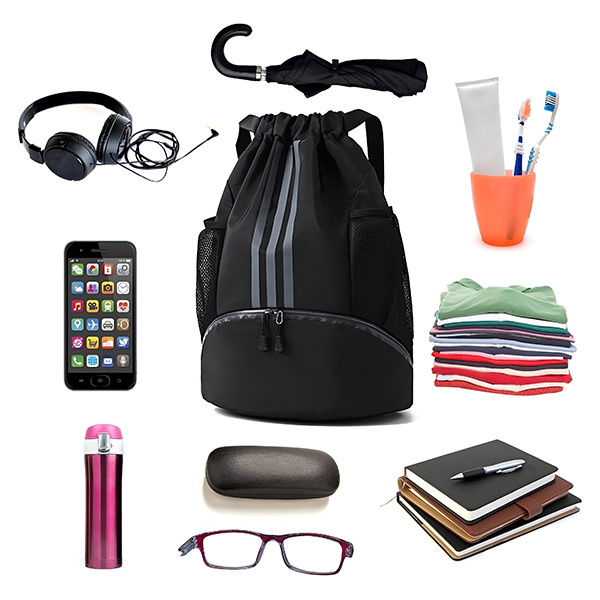 Rozlučte se s nepřehlednými taškami! Tento batoh má design s mnoha kapsami, včetně bočních síťovaných kapes, přední kapsy a speciální přihrádky na boty. Skvěle se hodí pro uložení lahví s vodou, deštníků, kapesníků, toaletních potřeb a drobných cenností.