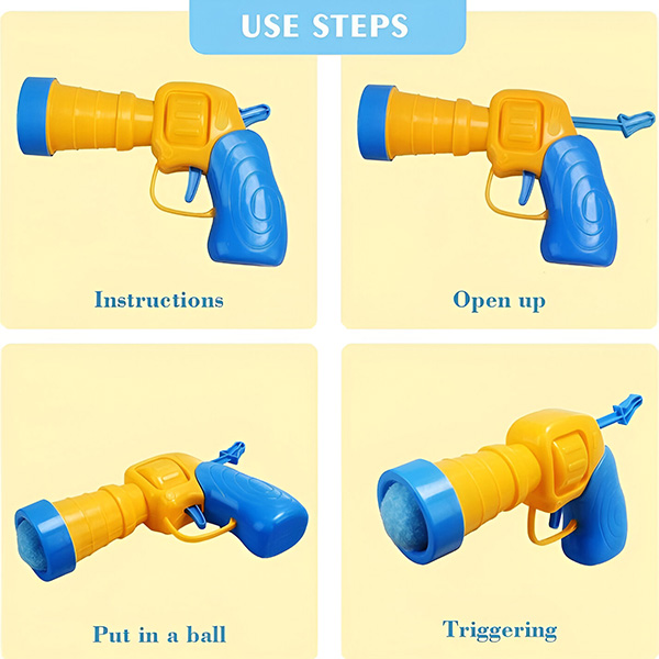 1x vystřelovač míčků, 20 barevných plyšových míčků